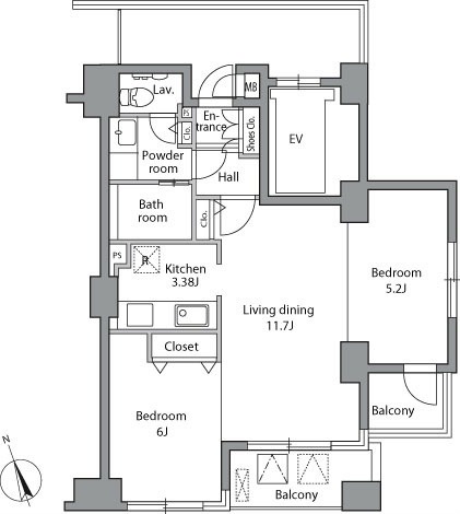 | 部屋詳細 | 洋室(6帖) 洋室(5.2帖) LD(11.7帖) K(3.38帖) | 所在階 | 7階 |