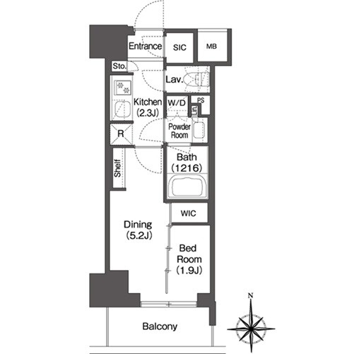 間取り 1DK 面積 25.23㎡