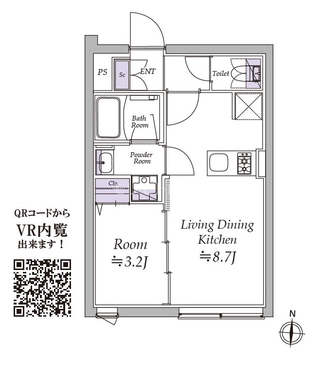 部屋詳細 洋室(3.2帖) LDK(8.7帖) 所在階 4階