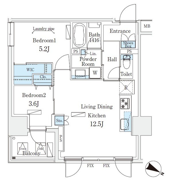 | 間取り | 2LDK | 面積 | 51.6㎡ |