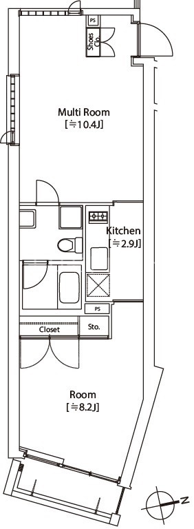 | 部屋詳細 | 洋室(8.2帖) S(10.4帖) K(2.9帖) | 所在階 | 3階 |