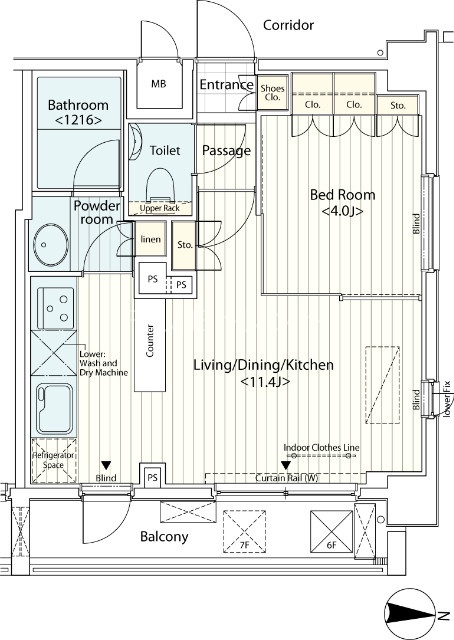 部屋詳細 洋室(4帖) LDK(11.4帖) 所在階 7階