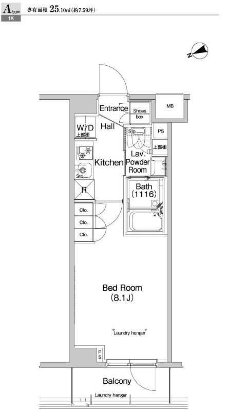 | 間取り | 1K | 面積 | 25.1㎡ |