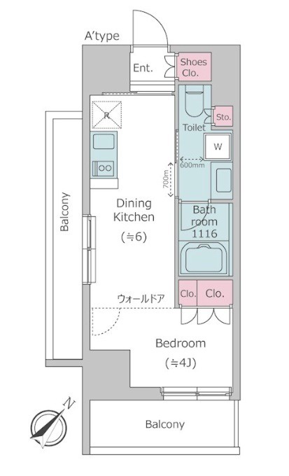 間取り 1DK 面積 25.61㎡