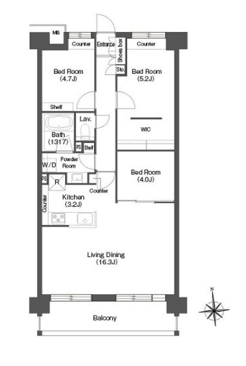| 部屋詳細 | 洋室(5.2帖) 洋室(4.7帖) 洋室(4帖) LD(16.3帖) K(3.2帖) | 所在階 | 7階 |
