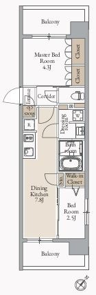 | 部屋詳細 | 洋室(4.3帖) 洋室(2.5帖) DK(7.8帖) | 所在階 | 9階 |