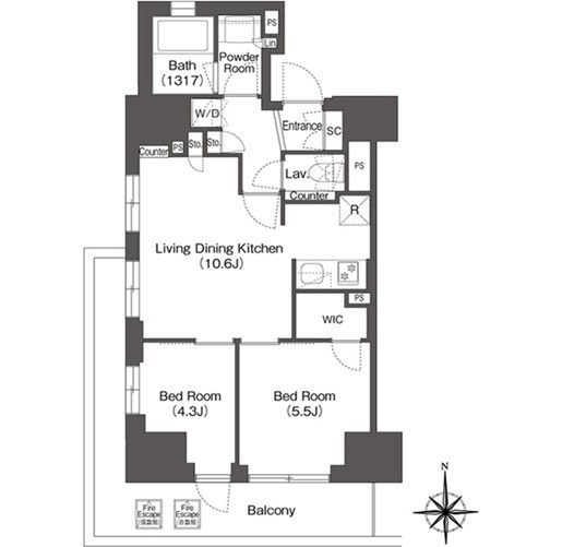 | 部屋詳細 | 洋室(5.5帖) 洋室(4.3帖) LDK(10.6帖) | 所在階 | 2階 |