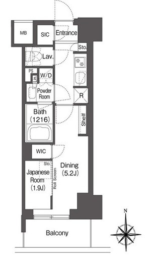 | 間取り | 1K | 面積 | 25.23㎡ |