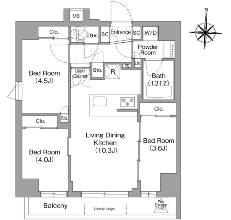 | 部屋詳細 | 洋室(4.5帖) 洋室(4帖) 洋室(3.6帖) LDK(10.3帖) | 所在階 | 4階 |