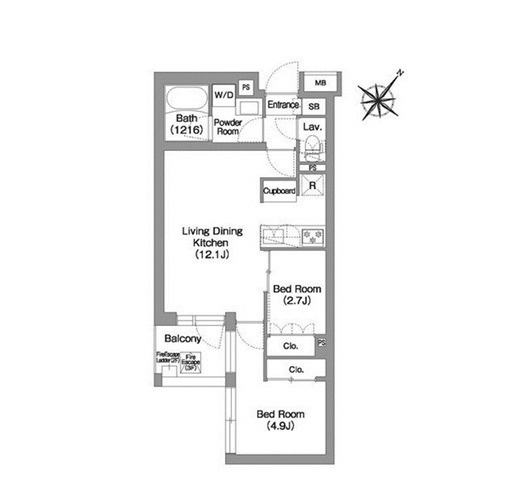 部屋詳細 洋室(4.9帖) 洋室(2.7帖) LDK(12.1帖) 所在階 3階