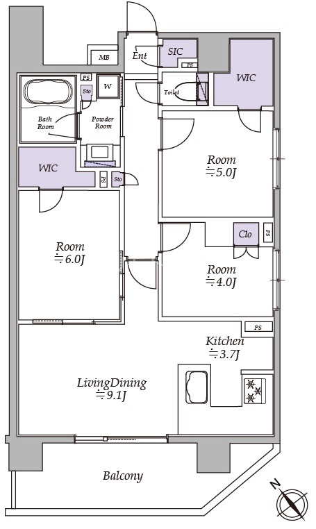 | 部屋詳細 | 洋室(6帖) 洋室(5帖) 洋室(4帖) LD(9.1帖) K(3.7帖) | 所在階 | 3階 |