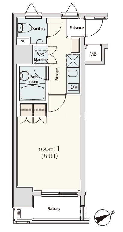 | 間取り | 1K | 面積 | 25.98㎡ |