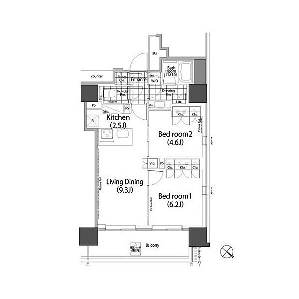 | 部屋詳細 | 洋室(6.2帖) 洋室(4.6帖) LD(9.3帖) K(2.5帖) | 所在階 | 21階 |