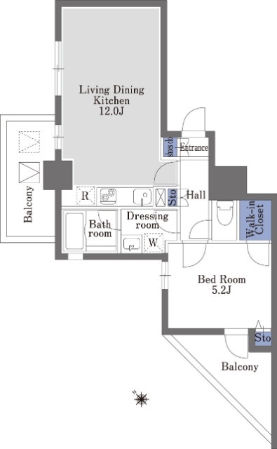 | 部屋詳細 | 洋室(5.2帖) LDK(12帖) | 所在階 | 8階 |