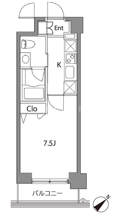 | 間取り | 1K | 面積 | 24.69㎡ |