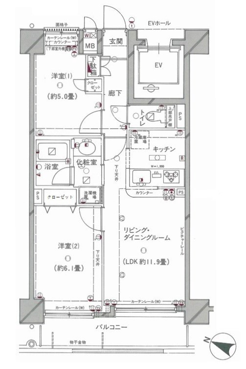 | 部屋詳細 | 洋室(6.1帖) 洋室(5帖) LD(11.9帖) | 所在階 | 2階 |