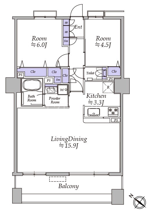 | 部屋詳細 | 洋室(6帖) 洋室(4.5帖) LD(15.9帖) K(3.3帖) | 所在階 | 10階 |