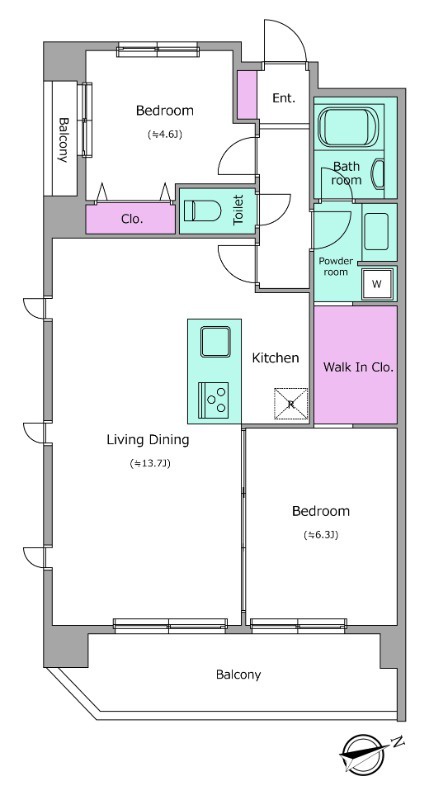| 間取り | 2LDK | 面積 | 60.74㎡ |