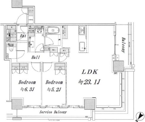 | 部屋詳細 | 洋室(6.3帖) 洋室(5.2帖) LDK(23.1帖) | 所在階 | 2階 |