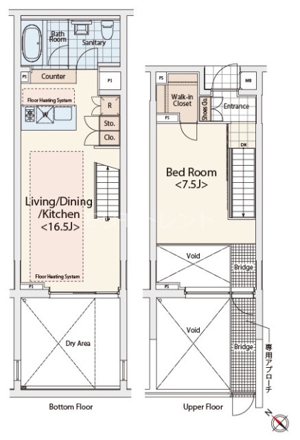 | 部屋詳細 | 洋室(7.5帖) LDK(16.5帖) | 所在階 | 1階 |