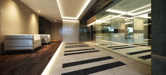表通りから一歩奥まった、渋谷区本町一丁目の通称・図書館通りの景観を美しく演出するエントランスアプローチ。重厚な光沢を放つブラウン系大理石貼りの柱・壁と、上質感溢れるホワイト系御影石貼りの床。そしてガラスの透明感とシンボルツリーが潤う洗練された空間がご帰宅を迎えます。内部には、エントランスホールの一画にラウンジコーナーを配置。天然石、無垢フローリングなどの素材を吟味し、ナチュラルな心地よさにつつまれる迎賓空間を設えました。